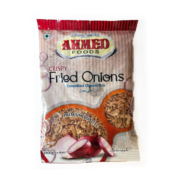 Ahmed Fried Onions is a crispy, tasty and flavorful topping made from sliced red onions that have been deep fried until golden brown. It is commonly used in south Asian cuisine as a garnish or ingredient in various dishes such as biryani, kababs, curries and more.