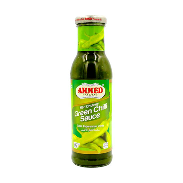 Ahmed green chilli sauce is a rich, zesty, spicy flavor sauce. Made from 100% Halal natural ingredients includes fresh green chilies, mint, coriander and garlic. Provide an authentic flavor of green chilies with zesty tangy taste and smooth texture. Ready-to-use and gluten-free. Ideal for sandwiches, curries and fired snacks like samosa, spring rolls, pakoras and other savory dishes. Marinade for grilled meats, stir-fries and other dishes. Used every day any time at homes, snack parties, dinner gathering and special festivals like Ramadan for all family members.