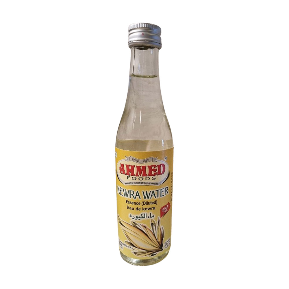 Ahmed Kewra Water is a fragrant, floral liquid. It has a unique, sweet, vanilla-like and fruity aroma. Extracted from 100% Halal natural leaves or flowers of the Pandanus tectorius plant (tropical kewra plant). Used as an essential flavoring in south Asian sweets like Gulab Jamun, Berfi, Puddings, Rasgulla, used in beverages and drinks and others savory dishes, biryani, pulao and qorma. Also used for skin benefits to reduces dryness and inflammation.
