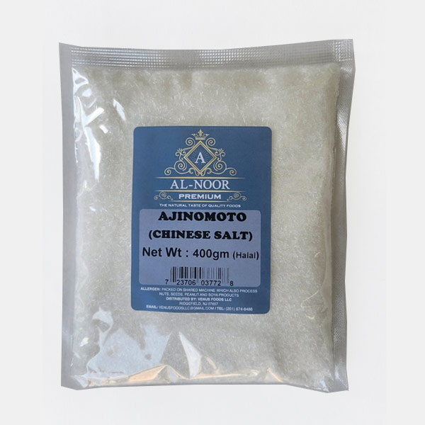 Al-Noor Premium AJINOMOTO is original Monosodium Glutamate (MSG). It is 100% Halal product made from plant-based ingredients like corn or sugarcane via fermentation. It is white crystalline powder also known as (Chinese Salt), used globally by chefs and home cooks to enhances richness aroma and flavor of various dishes.