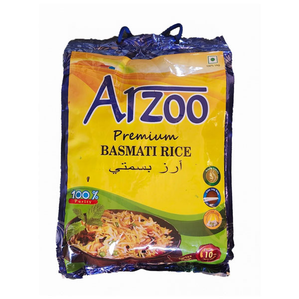 Arzoo Basmati Rice is a high-quality rice with long grains that cook to a fluffy and separate non-sticky texture. Includes rich and authentic aroma and flavor through specific nutritious. Suitable for various dishes like biryani, pulao and fried rice.