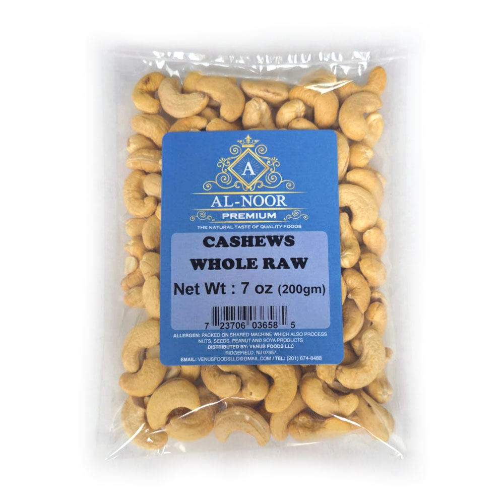 Al-Noor Premium Raw cashews are plump, kidney-shaped creamy color nuts. It has a rich, sweet, buttery, nutty and naturally mild flavor with softer and creamier crunchy texture. Good sourced of plant-based protein, fiber, healthy fats and minerals like copper, iron, zinc, magnesium and phosphorus. Ideal used for eaten plain, roasted or in trail mix, snacking, stir-fries and savory dishes, curries, baked goods and others recipes for all family members.
