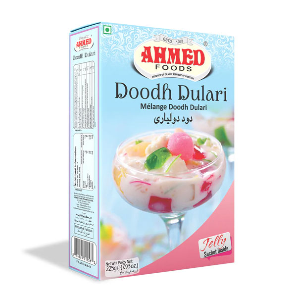 Ahmed Doodh Dulari is a sweet, rich, aromatic flavor, easy-to-make dessert. 100% Halal ingredients includes milk, falooda sevi, jelly cubes, sugar cardamom and rose essence. It has creamy smooth texture. Perfect for warm weathers and special occasions like Eid festivals for all family members.