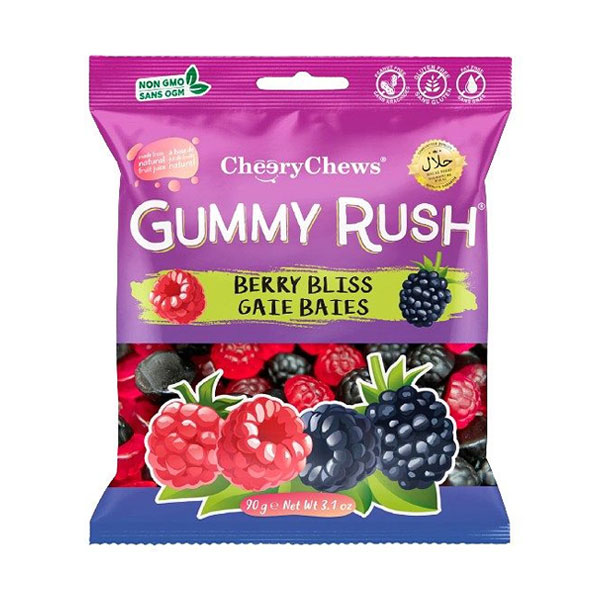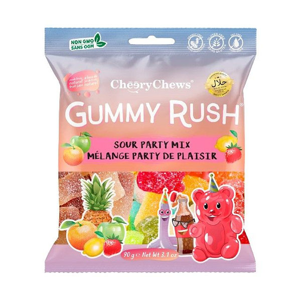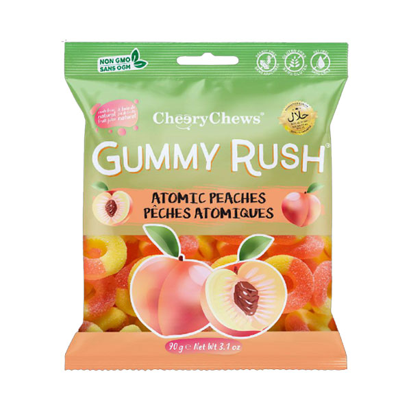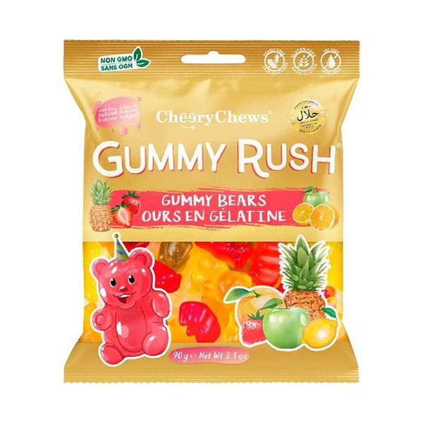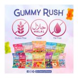 Made from 100% Halal ingredients includes beef gelatin, natural fruit juice and natural flavors and colors. Chewy fruit-flavored gummies. Allergen-free, Non-GMO. Gummy rush candies offers a variety of gummy shapes, flavors and styles including:
