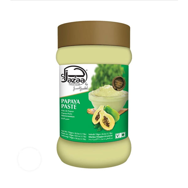 Jazaa Papaya Paste acting as a natural meat tenderizer. It is a convenient, pureed paste with authentic taste and quality. Made from 100% Halal natural ingredients includes green papayas, salt, oil, acetic acid and preservatives like sodium benzoate. Offering a bright, sunny and exotic tropical zest flavor with natural sweetness. Ideal for smoothies, dressing, marinades, curries, desserts or as a for chutneys in south Asian dishes to enhance flavor.