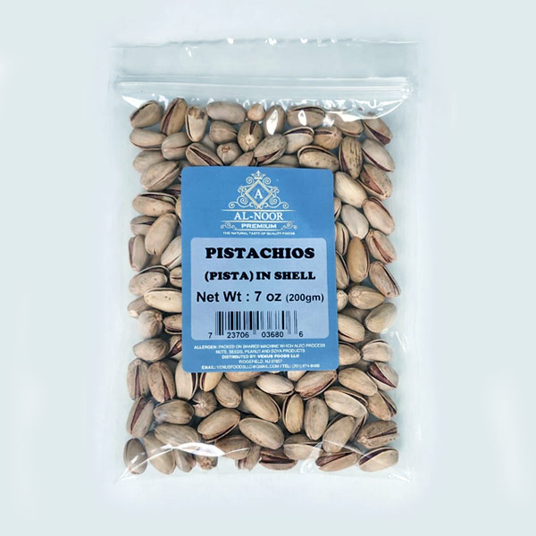 Al-Noor Premium pistachios (In shell) are 100% Halal naturally hard, beige outer shell that is typically split open, revealing the nut inside. A vibrant, emerald-green kernel with sweet, nutty, slightly tangy and salty flavor. Provide creamy, crunchy and buttery texture when roasted. Offering high rich fiber, protein, copper, potassium and magnesium. It is popular activity for nutritious snacking. Enjoying as an eaten alone with nuts or tea, desserts, smoothies, sweet dishes and baked items for all family members.