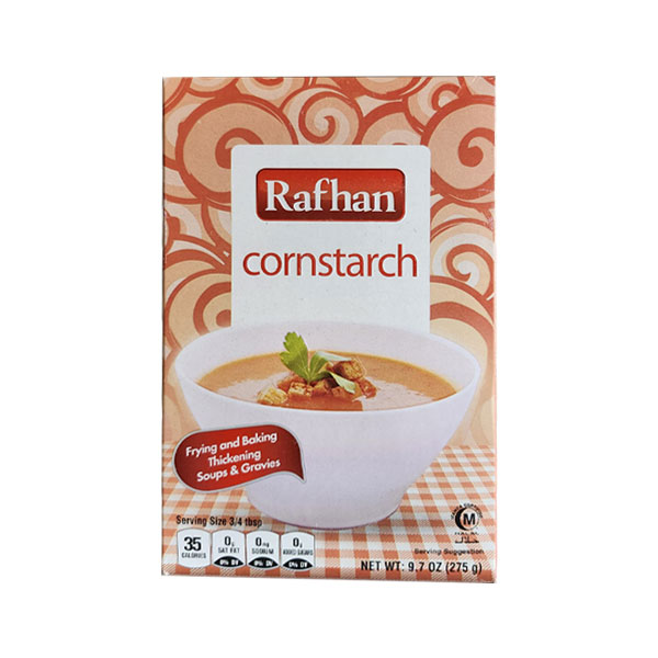 Rafhan Corn Starch is a fine powder made by grinding whole, dried corn kernels. Gluten-free ingredient. Ideal for baking, frying, thickening, gravis & soups and corn breads.