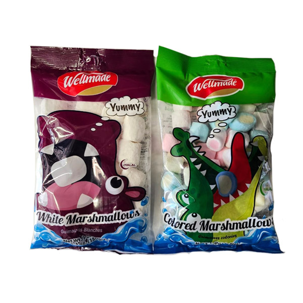100% Halal certified made from ingredients includes corn syrup, sugar, corn starch, Halal beef gelatin and artificial vanilla flavor. Suitable for eating straight from the bag, roasting over fire or using in recipes like mores, hot cocoa and rice crispy treats. Fat-free, cholesterol-free, low in sodium, gluten-free. Eating as a snacks among children and adults.
